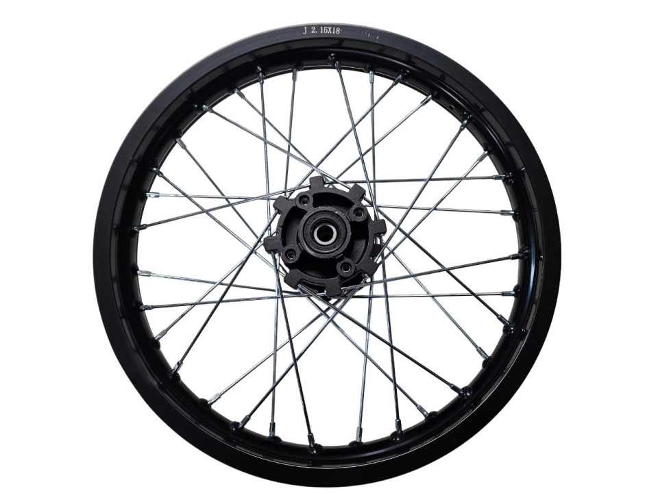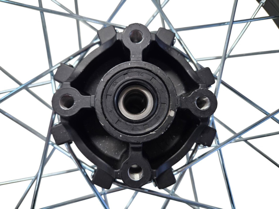 Kleuren: Zwart Het betreft een compleet wiel, met verbeterde 'nieuwe naaf': Velg, spaken, lagers en naaf compleet en reeds geassembleerd.